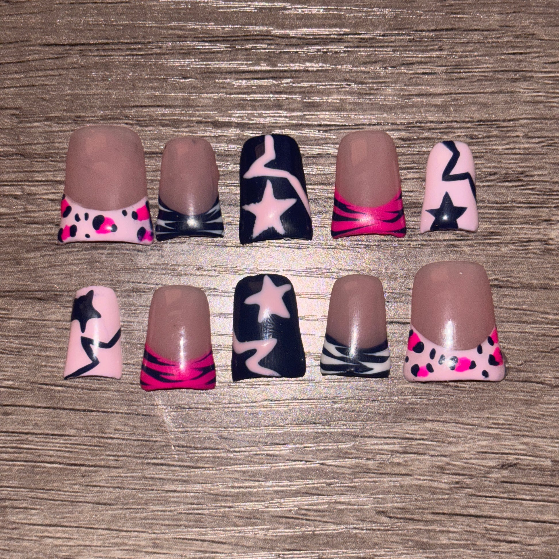 Get ready to rock with The "Nadia" Set—press on nails that bring funky Y2K vibes and star-studded flair to your fingertips. These salon-quality nails deliver durable, reusable glam that’s perfect for making a bold statement anytime. Channel your inner rockstar and shine bright with every move!